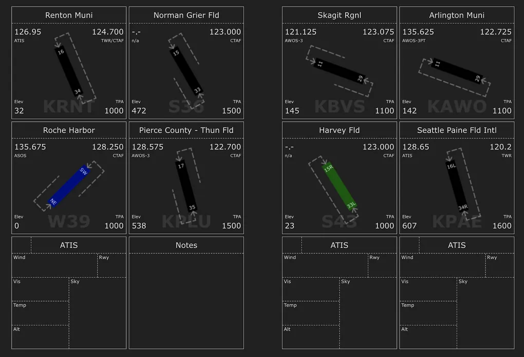 For example, I need to see traffic pattern orientation, rwy length, frequencies or ATIS.