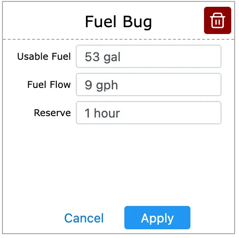 This tile is meant to check your fuel burn is where it’s supposed to be. You start by configuring your aircraft settings by clicking the tile header. By default it matches a C172S