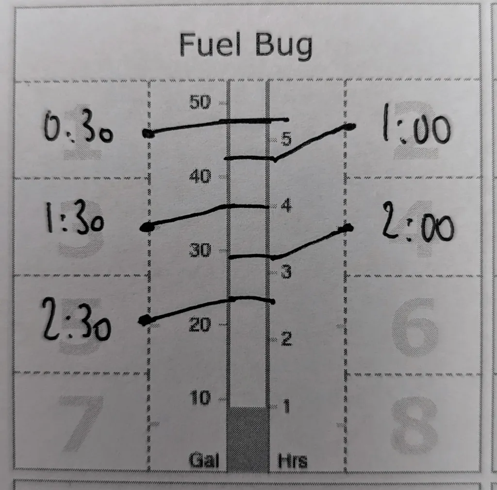 First, you need to calculate your expected fuel level based off your navlog or aircraft performance. You would then pick time based or location base and write down what your fuel level should be, using one of the 8 boxes. Here for example, I use a fuel check every 30min from departure. So of after 1h30min my fuel is way below 35Gal, I know something is off.