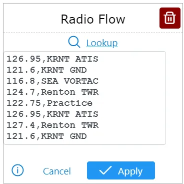 You can add frequencies into your list by clicking whichever makes sense for your flight. Close the popup with the cross button and voila! I hope this saves you time and bring great clarity to your Radio Flow.