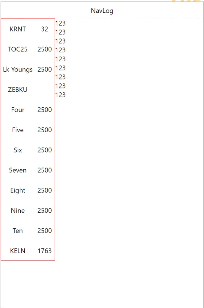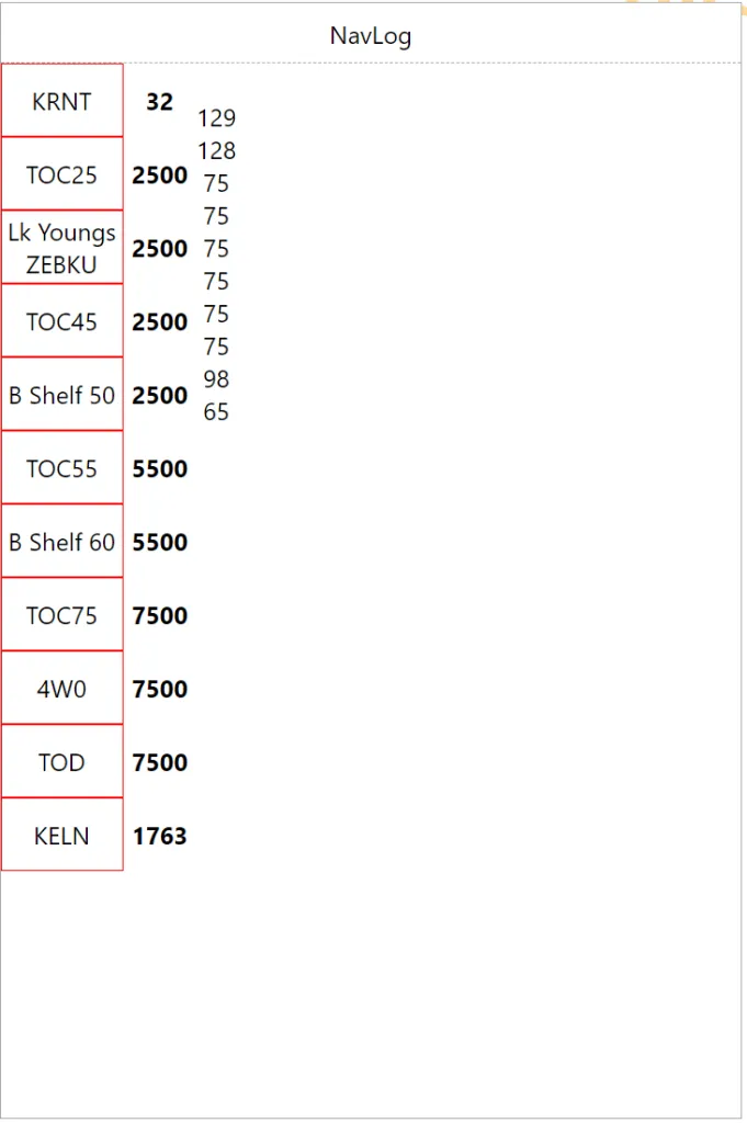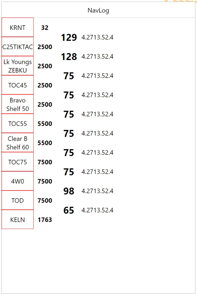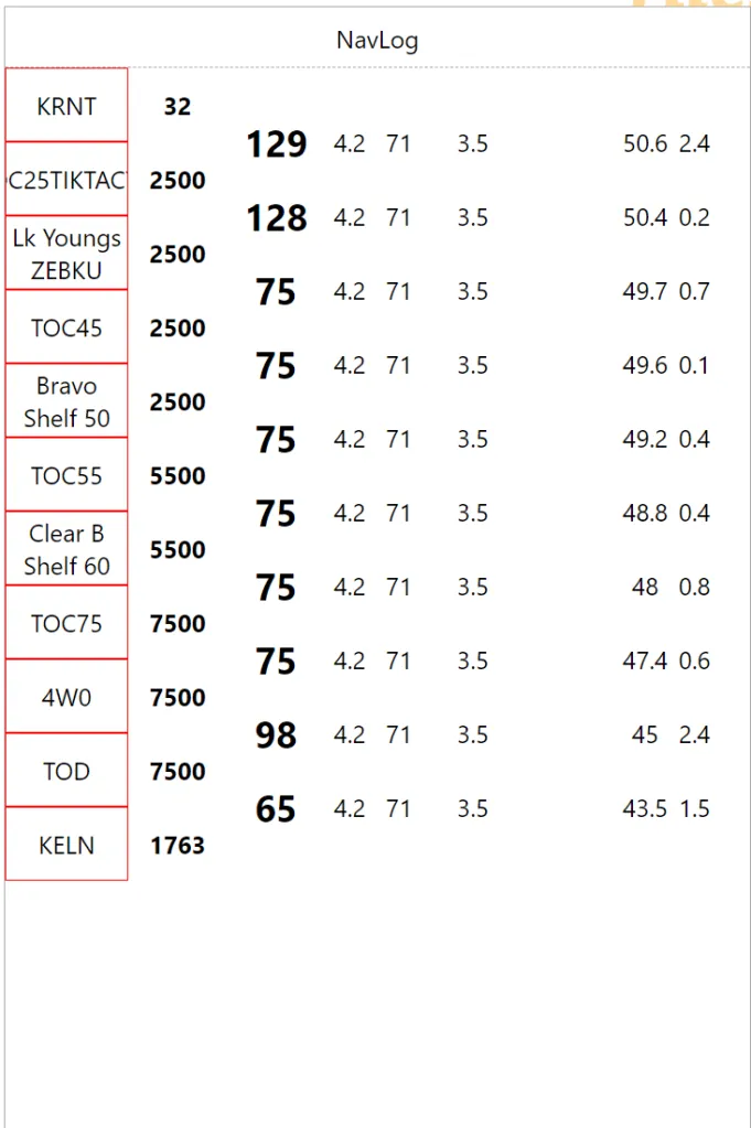 Now we are throwing actual checkpoint names to make sure the long one wrap correctly, then we boost the heading font size to something legible. We already have a good visual separation between checkpoints/altitude (left) and legs (right)