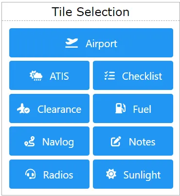 Over the past few days, minor cosmetic improvements have been released including Tile selection and Page selection use new icons from the Font Awesome library. Airport Tile default to edit mode so you can directly enter a new code, Checklist edit size, Checklist alignments.