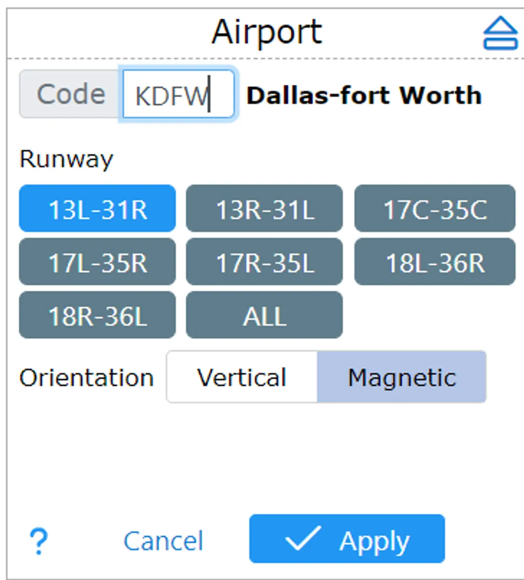 Finally, in order to make more room for runway list, the airport edit is now using a thinner orientation selection. The feature itself (vertical/magnetic) remains the same.