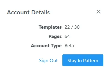 You can now see your account details by clicking your name in the upper right corner. For now, this is showing template count and pages count.