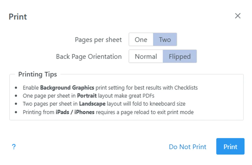 Let’s print this checklist with a flipped back page which will allow us to read emergencies without unclipping