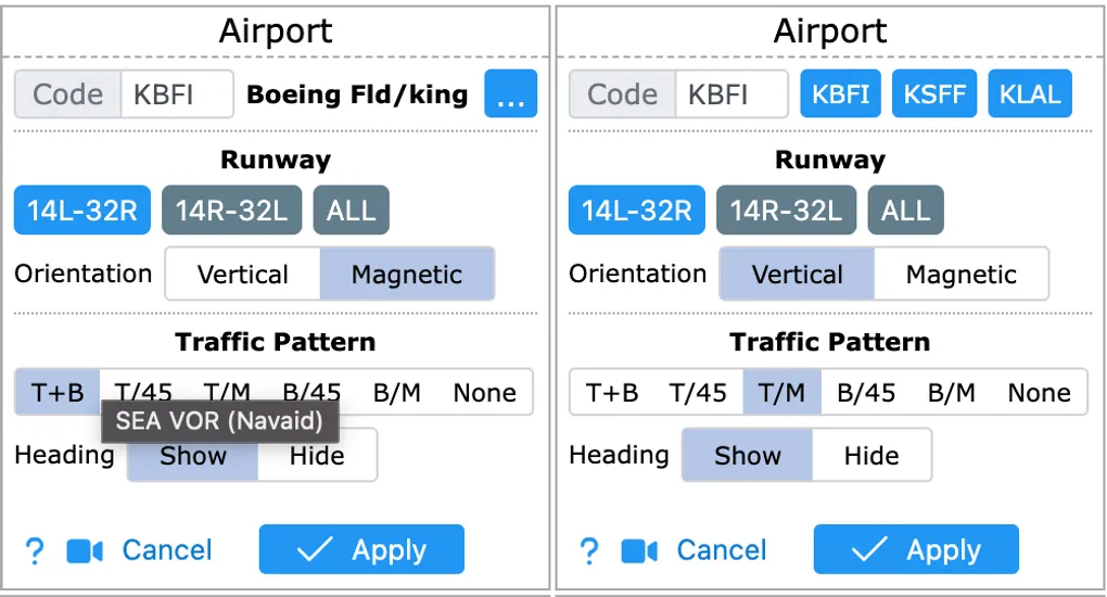 You can now easily access recent airport in the airport selection utility used across the app, such as the Airport Tile. When you click on the three dots button, the airport name is replaced by a list of recent airports. For example: