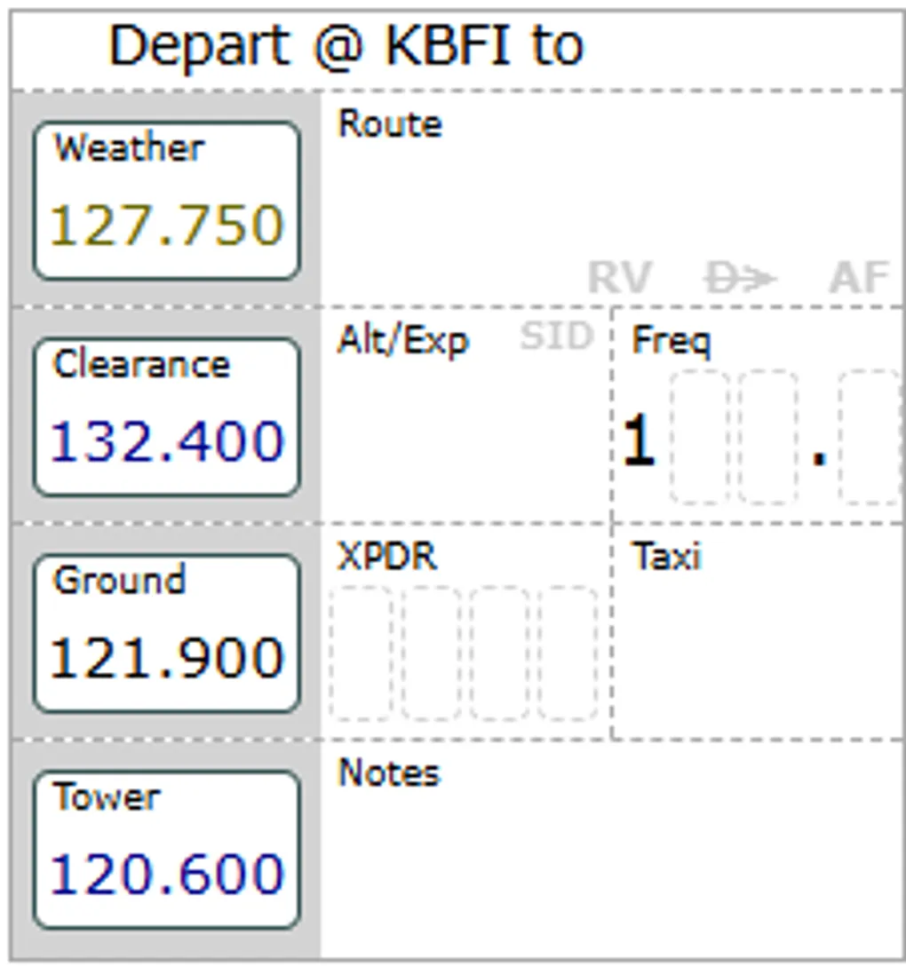 Departure Clearance now shows 1) RV Direct and AS in the Route box 2) SID in the Alt box, 3) Stencil in the Freq and XPDR boxes