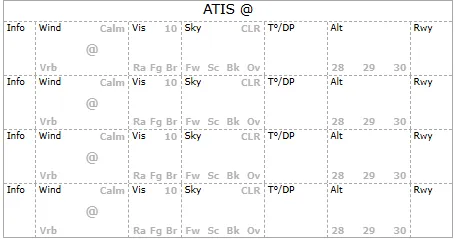Departure clearance and ATIS tiles have been improved with watermark that should save us some typing. If you have never used these watermarks before, they are meant to be circled in lieu of typing the information. This is making for a quicker and cleaner instruction copy.