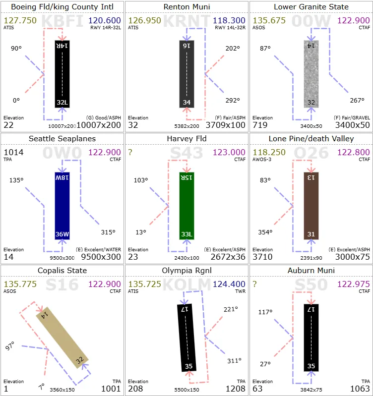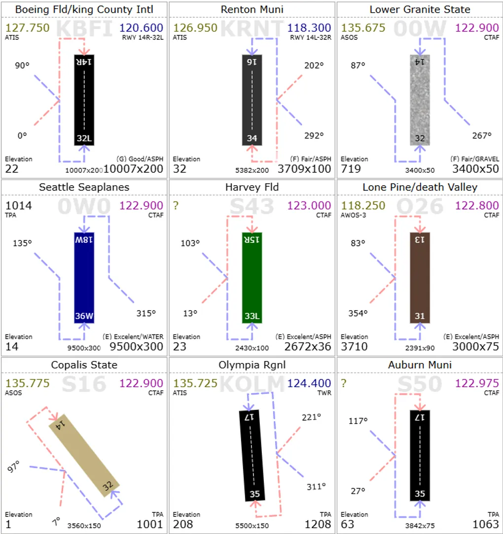You can now visually tell apart 7 types of runway pavements : Asphalt (black), Concrete (dark grey), Gravel (gray texture), Water (blue), Turf (green), Dirt (brown) and Sand (sand) see image below for a sample