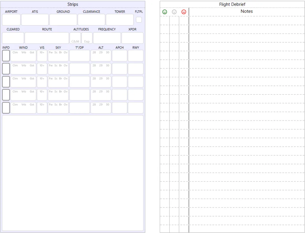 You can now access a new template from the “Ready to Print” section. “IFR Training” is handcrafted for IFR flight with multiple approaches where you pick a lot of weather information. In the back page, you can record your instructor (of self) feedback about the flight went.