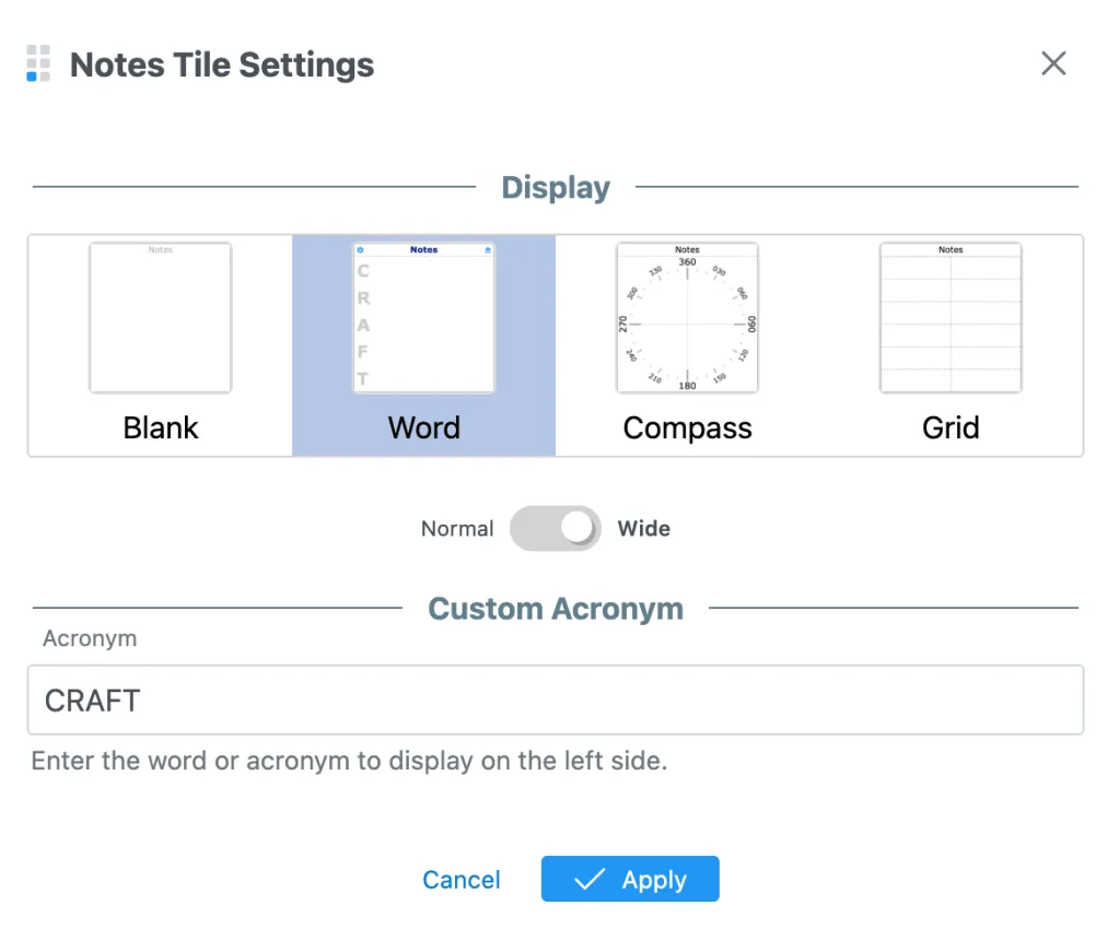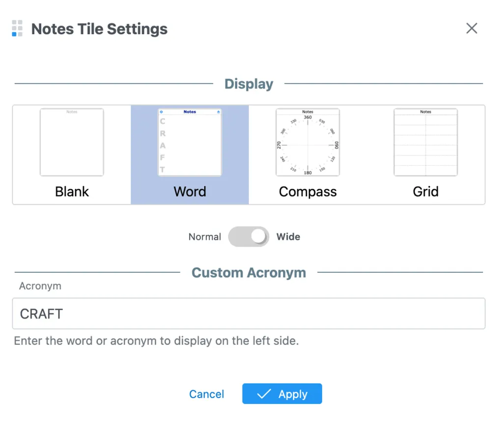 You are now able to configure the Notes tile with the standard Tile Settings popup which gives you more space to configure things: